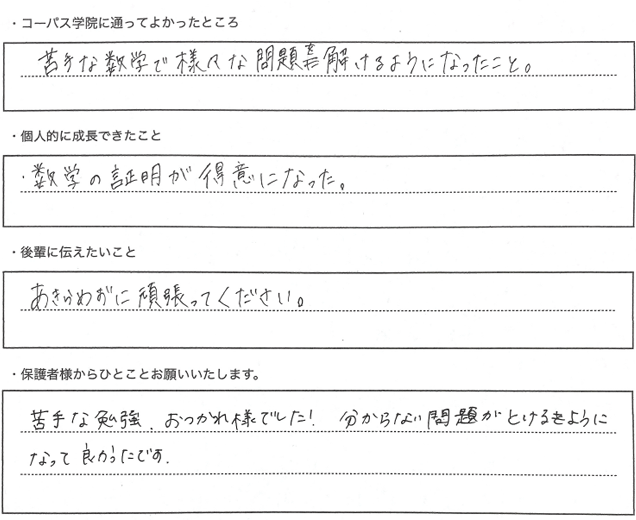 人生の中で受験は通過点の一つに過ぎませんが、大きな試練の一つでもあります。子供から大人へと成長しようと「脱皮」している彼らに手助けしてあげたいと考えています。